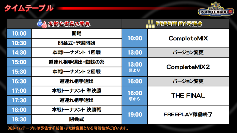 参加者アンケートで投票の多かった 五鍵バージョンをフリープレーで開放! ※イベント中にバージョン入れ替えを数回実施します |
